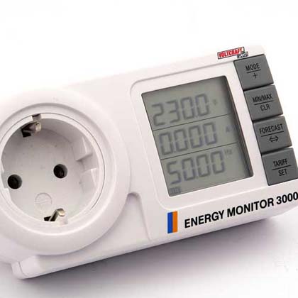 Mat dësem Gerät kann ee ganz einfach erausfanne, wou ee nach Stroum spuere kann a wou net! Andeems een d’Gerät einfach tëscht de Stecker an d’Steckdous plazéiert, gesäit ee wou wéivill Stroum fléißt. Sou fënnt een zum Beispill Stereoanlagen am Standby, Handyopladegeräter oder en ale Frigo, dee nach ganz vill Stroum brauch.