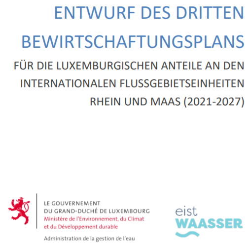 Hei de ganze Plang am PDF-Format: Entwurf 3. Bewirtschaftungsplan nach WRRL (2021-2027). Weider Dokumenter ronderëm de Waasserbewirtschaftungsplang fannt Dir op waasser.lu.